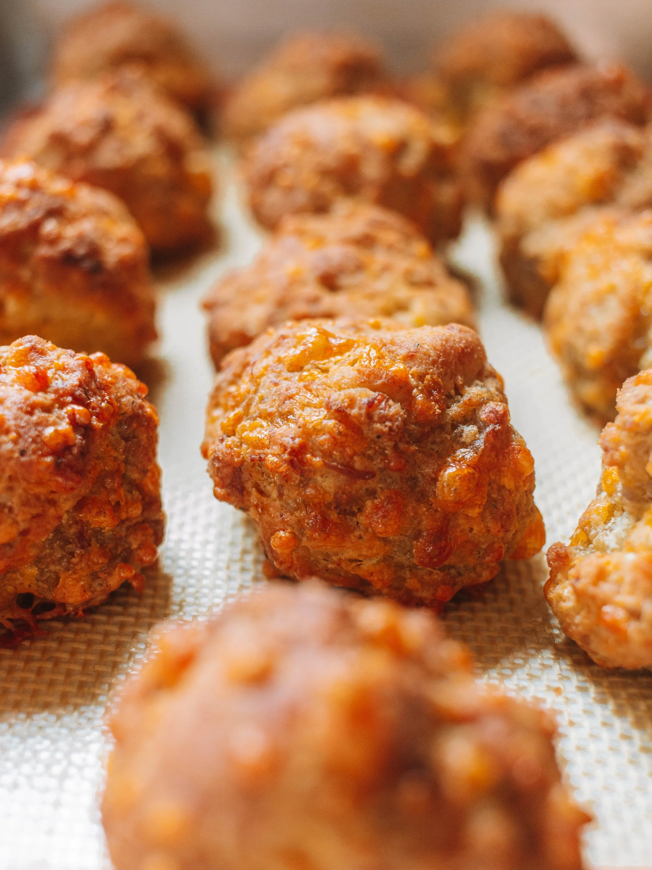 I didn’t know sausage balls were a thing until I moved to a new place in my twenties. Now I can’t get enough of them. However, I don’t love the process of making them because it is pretty tedious. And with Casey having celiac, we have to alter the traditional recipe a little to make it work with gluten-free flour. But I tried a different method making these and the process was much better, and I’m happy to share that with you today! After making these for years and years, this is the best recipe yet.